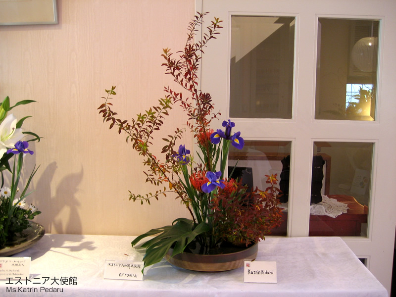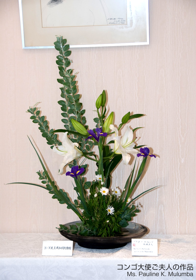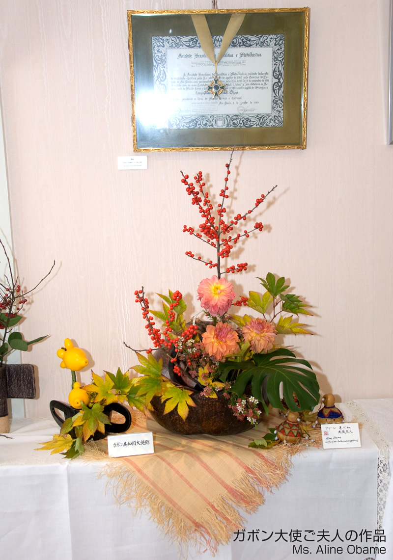 また、サロンの別のコーナーでは、在日大使夫人はじめ外国の方々が、それぞれの国をイメージした作品や、日本的な作品を展示され、世界に広がるいけ花の素晴らしさを味わうことができました。