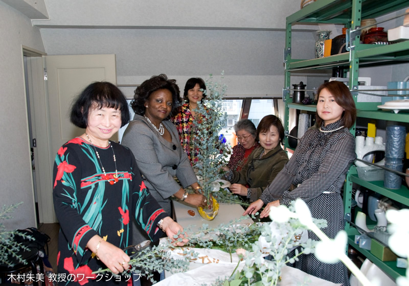 国際いけ花では、NPO法人として、日本の伝統文化である「いけ花」を、少しでも多くの人々に広めたいと考え、このような地道な活動も続けております。ご希望があれば、どこへでもいけ花指導に伺います。日々の生活に潤いを与えるいけ花、青山本部でも、ご希望の日程でレッスンを行っておりますので、ぜひいけ花のお稽古にお出かけください。世界中の人々が集う場所・国際いけ花は、これからもいけ花を通して、友情の輪を広く世界に広げてゆきたいと願っております。