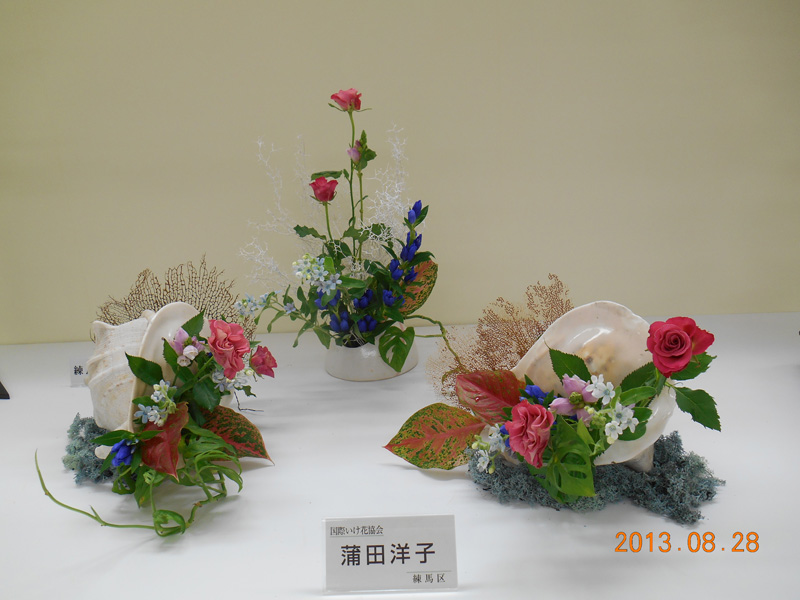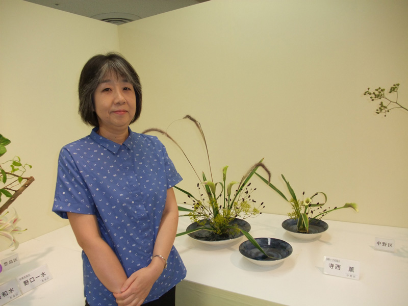 池袋の東武百貨店8F催事場において、8月29日から9月3日まで東京都華道茶道連盟主催いけ花展〜「彩花展」が開催され、国際いけ花協会からは、蒲田洋子教授、増田三千代教授、川崎和美教授、寺西薫が出展しました。今年の夏は記録的な暑さを経験しましたが、この頃になると朝夕はしのぎやすくなり、会場に展示された秋を感じさせる花々に、初秋の爽やかな風情を感じることができました。