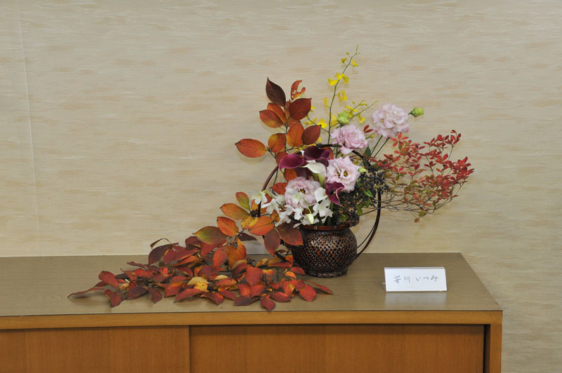 11月19日(火曜13:00〜16:00)と20日(水曜10:00〜16:00)、港区西新橋、桜田ビル9階の桜田倶楽部において、国際いけ花協会の華展が、実りの秋をテーマに開催され、多くのお客様が来場されました。