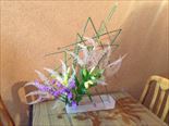 7月11日のレッサム・フィリリでのいけ花クラスは、増田三千代教授指導のもと、『涼しさを生ける』というテーマで行われ11人が参加しました。ふといを折り曲げて線を生かし、透かし百合、スターチス、晒したシダの葉などを加えて夏らしいイケバナを楽しみました。