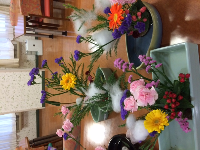 介護付有料老人ホーム「舞浜倶楽部」において、月一回、川ア和美教授の指導で国際いけ花の教室が開かれています。12月はクリスマスアレンジで、ガーベラやカーネーションなど色とりどりの色彩の花に、白い綿で雪を表現し可愛く出来上がりました。