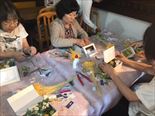 6月5日(月)のレッサムフィリリでのお稽古は、安藤恵子教授の指導で、写真立ての付いたボックスに、アーティフィシャルの多肉植物、ミニバラ、ミニリンゴ、ドライのオレンジ、黄色い小花などを使ったアレンジを仕上げました。低めにフタが閉まるように工夫し、それぞれ犬や猫、風景の写真などを飾り、父の日のプレゼントとしても最適な作品となりました。当日は、スリランカのソーマシリさんもみえ、ボックス作りを楽しんでいらっしゃいました。