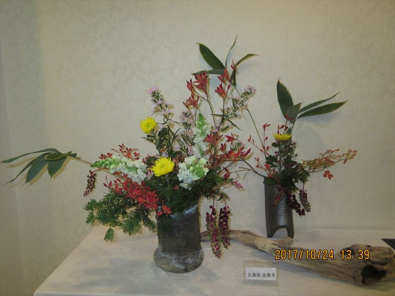 10月24日(火・12時〜18時)、25日(水・10時〜16時)、渋谷区のアイビーホール青学会館で、NPO法人・国際いけ花協会の華展が、<日本の美をいける>というテーマで開催されました。それぞれが選んだ器に秋色の美しい花々を個性豊かに生け、日本の心を表現した作品が会場に並びました。